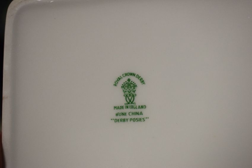 A Royal Crown Derby 'Posies' pattern trinket dish having scalloped edges, w12.5cm, sold together with a lidded trinket dish and egg cup ect