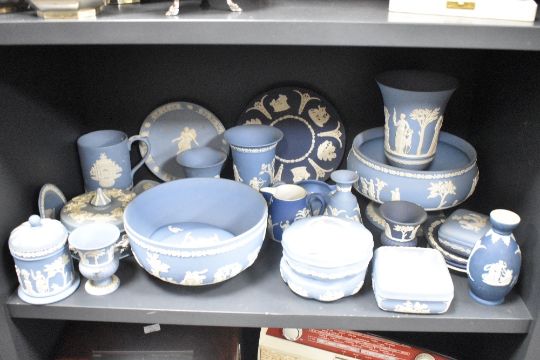 A quantity of Wedgewood Jasper ware, to include fruit bowl, trinkets and cream jug ect