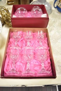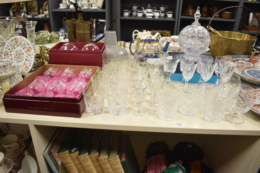 A quantity of Bohemian crystal glasses, fruit bowl and tumblers ect, to include a tureen having paper label for 'Germany', sold together with a blue and gilt Limoges cup, saucer, trinket bowl and two vintage plates (approx 40)