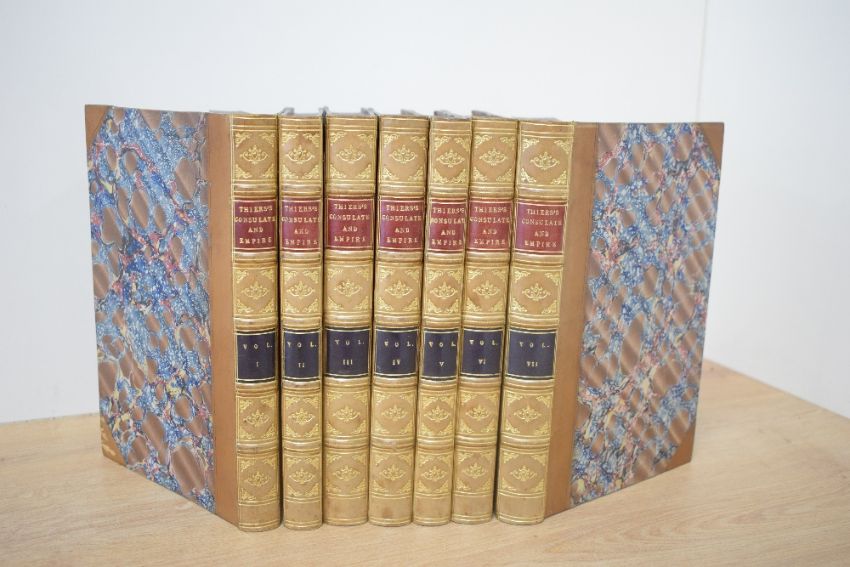 Antiquarian. Campbell, D. Forbes (trans.) - History of the Consulate and the Empire of France under Napoleon. By M. A. Thiers. London: Henry Colburn, 1845-1847. Volumes 1-7 only. Uniformly bound in half calf, marbled boards, spines in gilt. (7)