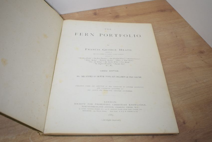 Natural History. Heath, Francis George - The Fern Portfolio. London: S.P.C.K. 1885, third edition. With 15 full-page colour plates. Original cloth, spine detached. Clean within. (1)