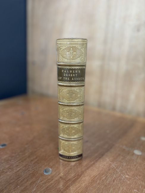 Antiquarian. Three titles. Palmer, E. H. - The Desert of the Exodus: &c. Cambridge: Deighton, Bell, and Co. 1871. Parts I and II bound as one volume. 576pp. With maps, full-page illustrations, and woodcuts. Bound in full tree calf, gilt. With; Froude, J. A. - Caesar: A Sketch. London: 1879. Full calf, gilt. And; Mozley, J. B. - Historical Essays. London: 1878. Full tree calf, gilt. (3)
