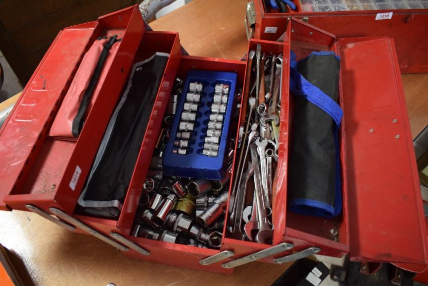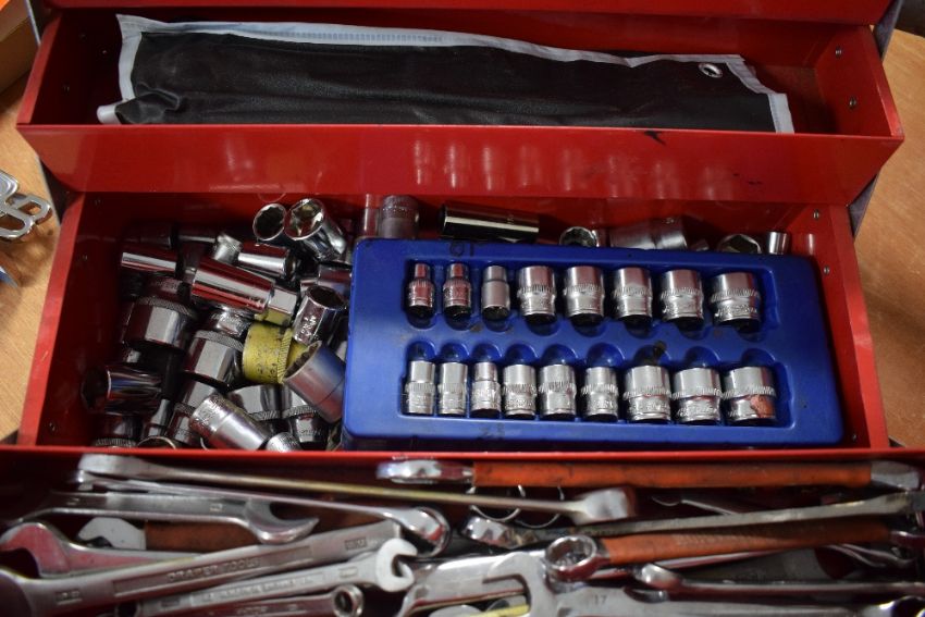A cantilever tool box containing sockets and spanners
