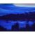 Sheila King (British Contemporary) Oil on canvas, lakescene at dawn/dusk in shades of blue, signed lower right, within wooden white slip and navy painted frame, 49.5cm x 39.5cm and 63cm x 53cm overall, some marks to frame.