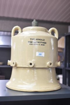 A vintage Arnold Foster Mother stoneware animal/piglet feeder, used to feed young orphaned or struggling livestock, measures 32cm tall.
