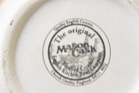 A Mason Cash Heritage mortar and pestle sold together with two similar mortar and pestles one in green marble.
