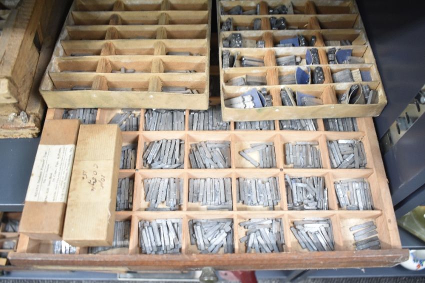 A vintage Adana letterpress printing press machine , sold with printing type,(various fonts and type blocks) and trays etc. AF.