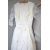 A 1965 wedding dress in snow white Leavers Lace, with starched bow detail and layered skirt, label reads 'A Craft Production of the British Leavers Lace Industry, measures: 26 inch waist, 36 inch bust, along with an intricately pearled floral headpiece with net veil having floral crochet border, measuring 20 inches long, netting has greyed slightly due to age.