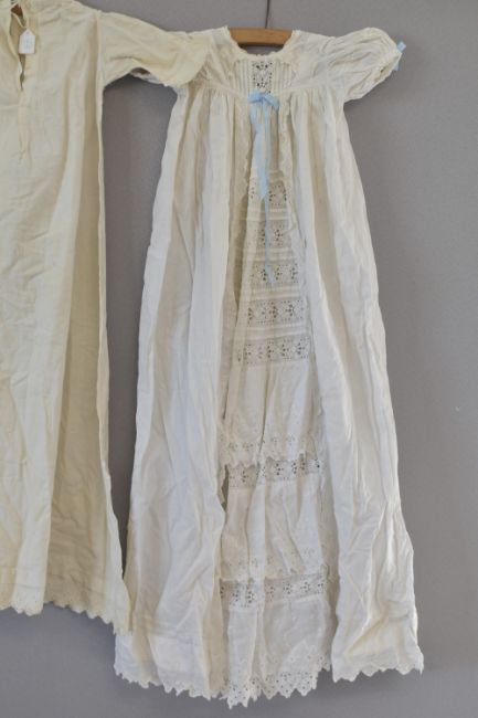 Two 20th century girls' white cotton nighties. Some small marks and discoloration due to age.