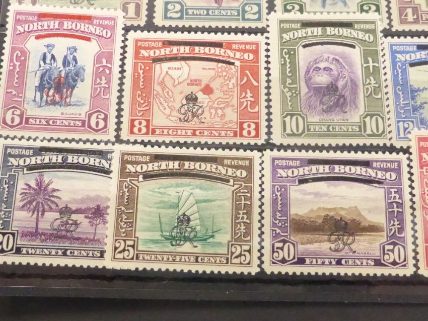 NORTH BORNEO 1947 CROWN COLONY DEFINITIVE SET OF 15 - MINT Card with the 15 definitives for the Crown Colony issue of 1947, with bars obliterating words and BMA crown opt. All generally lightly mounted mint. (SG335/49)