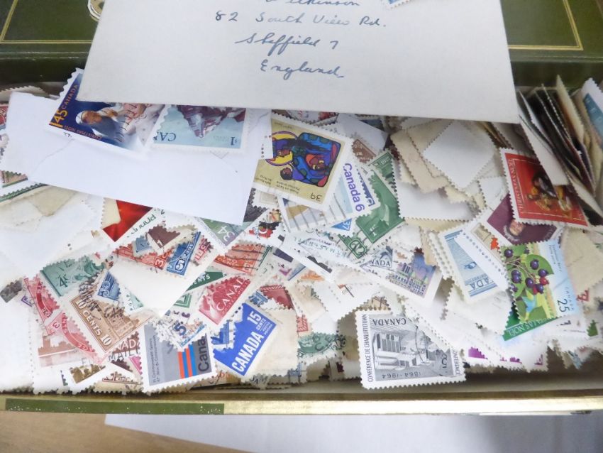 WORLDWIDE OFF PAPER COLLECTIONS IN 40+ BOXES, SOME MIXED OTHERS BY COUNTRY Box with over 40 boxes, mostly King Edward style boxes, others larger and some smaller. Many of the cigar boxes labelled by country and each contain several hundred stamps, if not more. Then we note other boxes with bundle ware and much more!