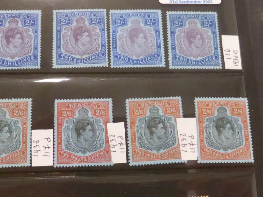BERMUDA GV - GVI KEYPLATES, 2/- TO £1 MINT AND SOME USED Stocksheet with 23 Keyplates, predominantly GVI era. Many identified. Lovely lot mix of mounted and unmounted mint.