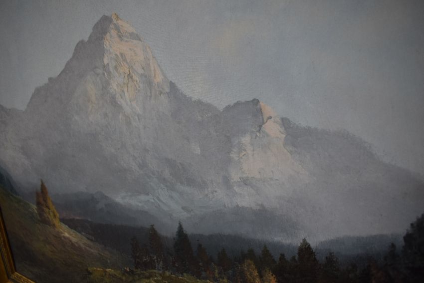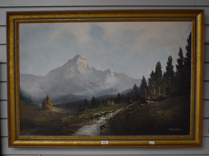 Karl Schmidbauer (German 1921 - 1998) Oil on canvas, an attractive alpine mountain landscape, signed lower right, within moulded gilt frame, 90.5cm x 60cm & 102cm x 72cm overall.