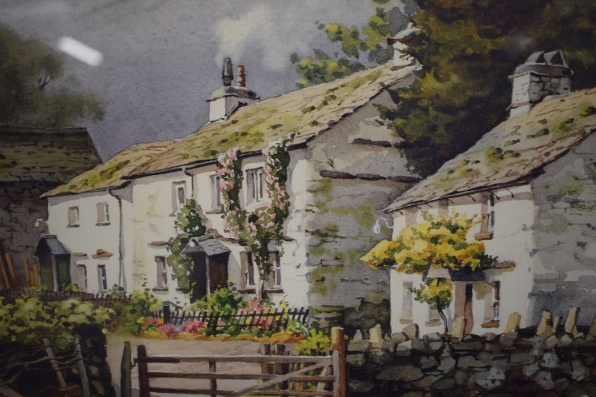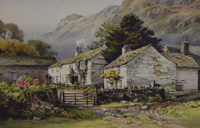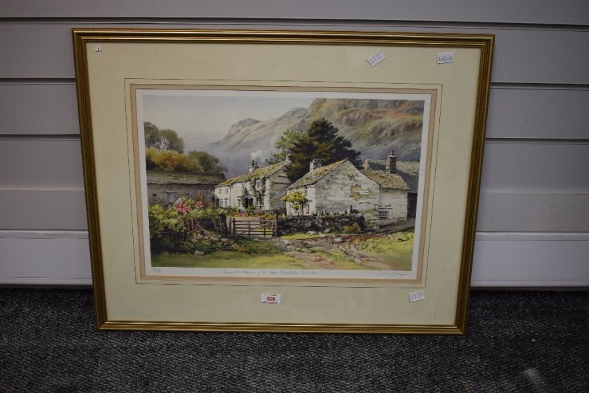 *Local Interest* After Judy Boyes (British b.1943) Limited edition 'Summer Morning at Low Yewdale, Conistion' a charming depiction of a Lakeland farm, to margin lower left edition number '205/850' title to centre and signed in pencil to lower right, certificate of authenticity and artist biography verso, within stepped washline mount and moulded gilt frame, 48.5cm x 33cm & 68cm x 54.5cm overall.