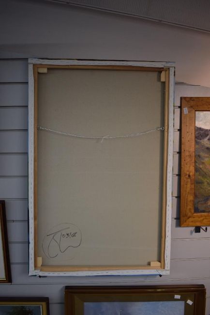Brush strokes visible, upper right corner fold with paint losses, appears to be original painting.