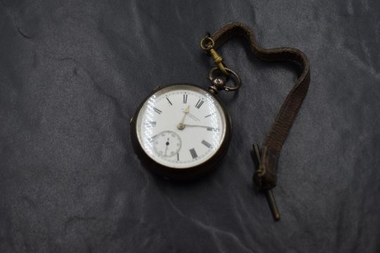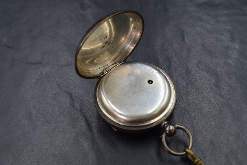 A Victorian silver W. Robinson Liverpool open face key wound pocket watch, the white dial having baton numerals with subsidiary dial, the case having an engraved shield, the case numbered 8665, marks for Chester 1890, 124g