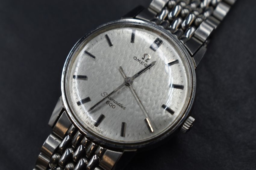 An Omega Seamaster 600 wristwatch, the textured silver tone dial having baton numerals and date aperture, on a stainless steel bracelet strap, in an Omega box. In working condition but not tested for functionality