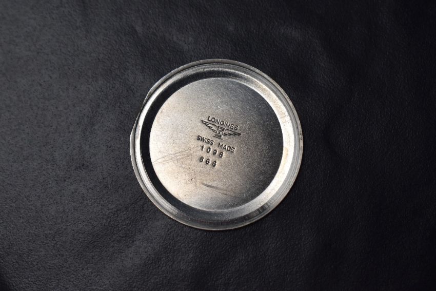Condition report: Hands and date adjust correctly using corwn. Ticks/runs when wound but not teste for functionality. Approximately 4cm including crown, 3.6cm excluding crown. Seconds hand keeps running when the crown is pulled out and stops at 12, does not continue to run when the crown is pushed in. No cracks to the crystal but small scratches to centre and general slight surface wear