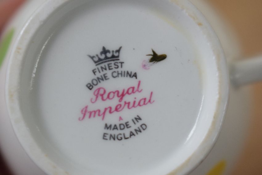 A group of five Royal Imperial fine bone china polka dot design tea cups and saucers (10)