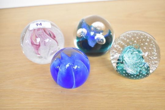 A selection of four Caithness Scotland studio art glass paperweights, featuring 'Congratulations', 'Sea Gems', 'triple Crown', and 'Cauldron' (4).