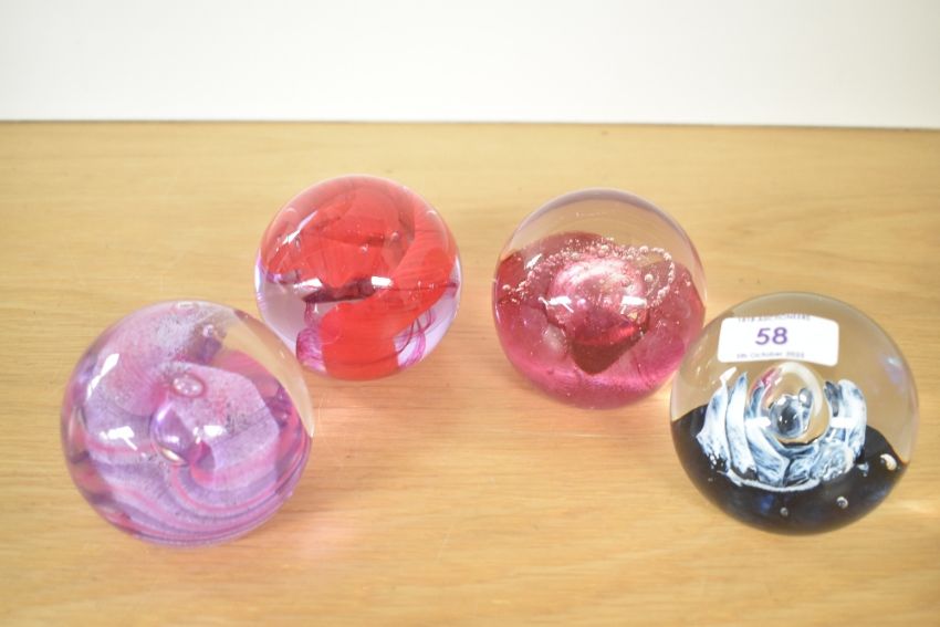 A selection of four Caithness Scotland studio art glass paperweights, featuring 'Quicksilver', 'Fireball', 'Oriental Silk', and 'Crucible' (4).