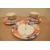 Two Emma Bridgewater pottery Bright Poppies pattern breakfast trios and a single tier cake plate with central metallic handle