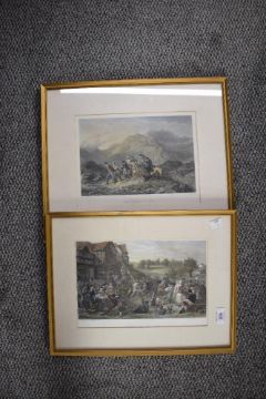 Two 19th century coloured prints 'Raising The Maypole' after Goodall and The Height of Ambition after Jacob Thompson