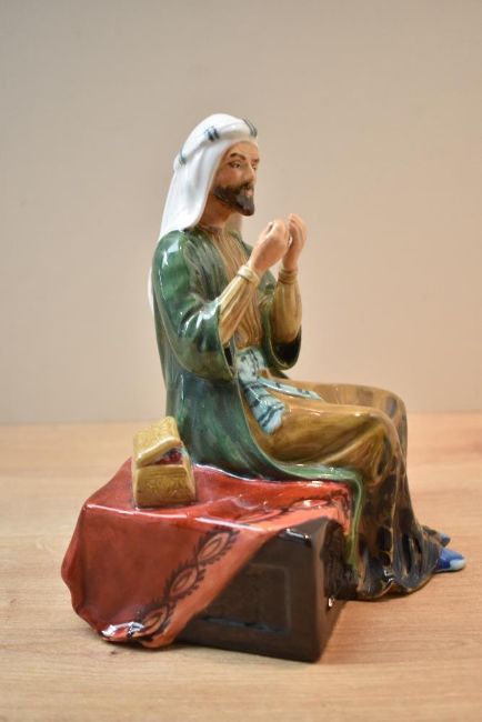 A Reg Johnson and Sons, Formerly of Royal Doulton, studio pottery figure 'The Merchant' measures 17cm tall.