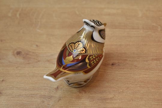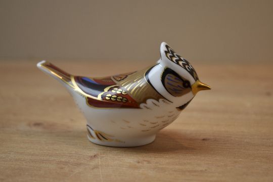 A Royal Crown Derby bone china Collectors Guild 21st Anniversary Crested Tit paperweight, having Imari style decoration with gold coloured stopper.