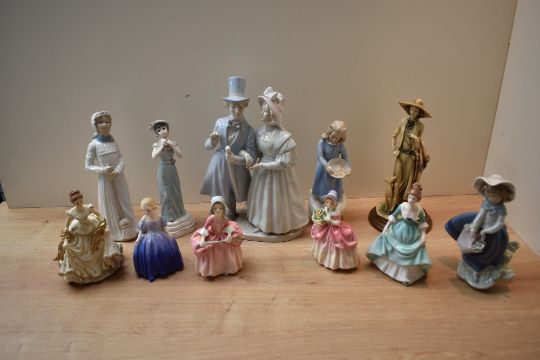 A selection of Royal Doulton and similar figures/figurines to include 'Cissie' HN 1809 and 'Bo Peep' HN 1811.
