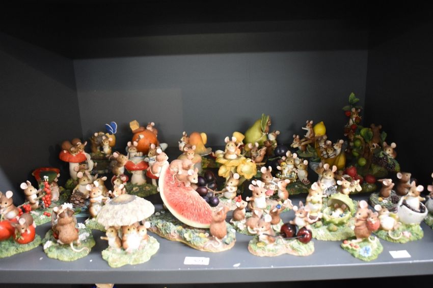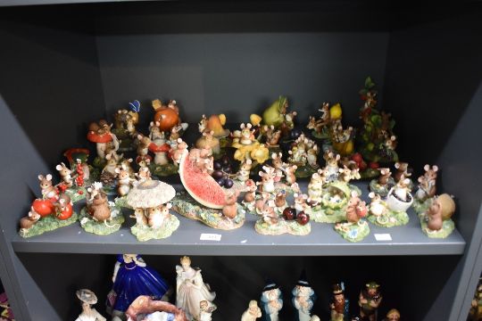 A selection of thirty seven Border Fine Arts Merrie Mice Fruit Fun, Funguys and Happy Families series to include 'The Grape Escape' model number A1631, 'Fruit Fun' model number A0441 and 'Lazy Days' model number A1811 etc.