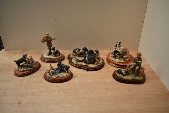 A group of six Border Fine Arts animal.figure groups to include 'Spring Chores' model number JH69A designed by JA Butler and 'Scarecrow Scallywags' model number B0085 designed by Anne Wall, all complete with boxes etc.