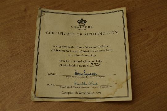 Two Coalport limited edition animal groups 'Kingfishers' and 'bullfinches', one certificate of authenticity.