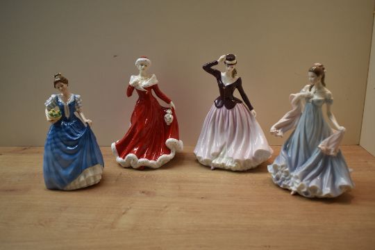 A group of three Royal Doulton bone china figurines comprising 'Helen' HN 3601, limited edition 'Autumn Stroll' HN 4686 208/7500 and limited edition 'Winter Time' HN 4825 355/9000 sold together with limited edition Royal Worcester bone china figurine 'With All My Heart' 7243/12500.