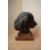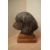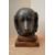 A large resin sculpture depicting the head of a Labrador, raised on a two tier wooden base, measures 30cm tall.