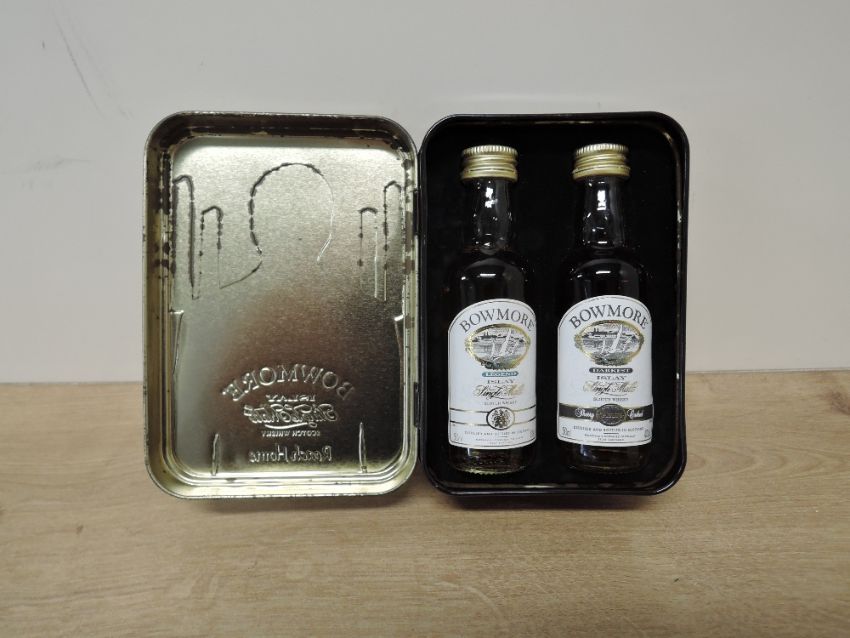 Bowmore Reach Home Miniatures Gift Set, Legend 40% vol, 5cl and Darkest 43% vol, 5cl, in gift tin, 2 miniature bottles