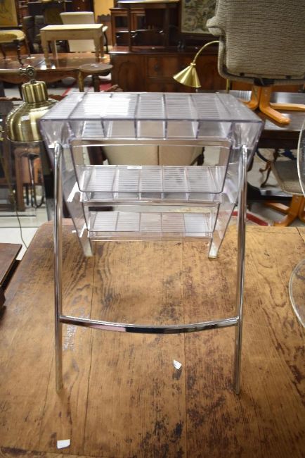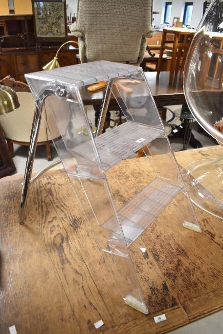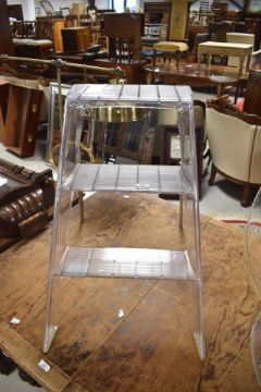 A set of vintage style clear acrylic folding steps with chrome supports