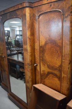 A Victorian walnut breakfront mirror door wardrobe, width approx. 206, height 197cm