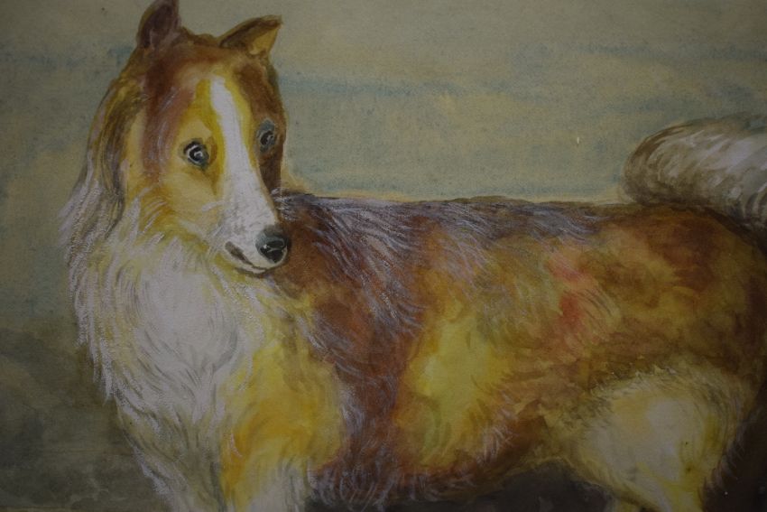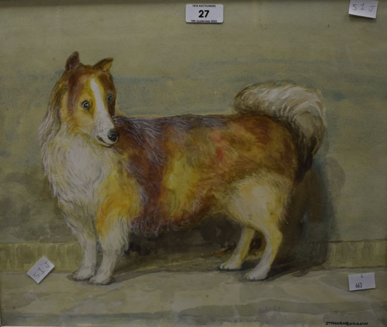J. Thornbarrow (British 20th century) Watercolour, an attractive study of a small dog, signed lower right, within a white moulded frame, under glass 39.5cm x 33cm & 44cm x 37.5cm overall