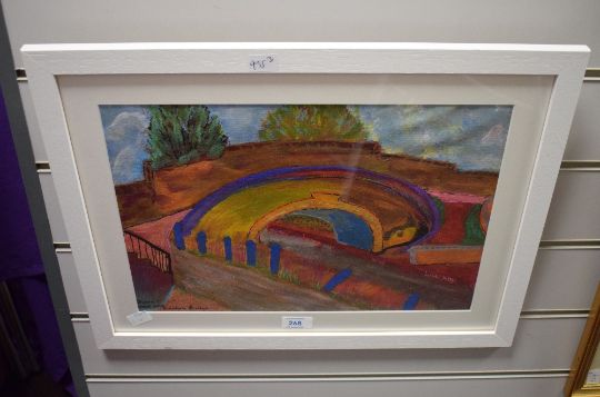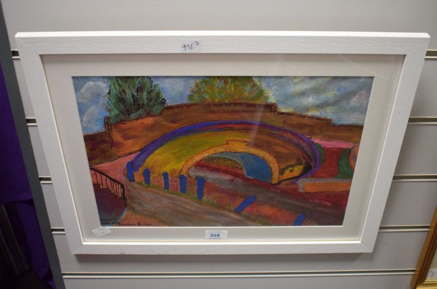 Diana T (contemporary) three acrylics on canvas 'After Seago', 'Turmoil' and 'Rainbow Bridge' within white card mounts and white painted frames, under glass 26.5cm x 36cm & 38cm x 48cm overall.