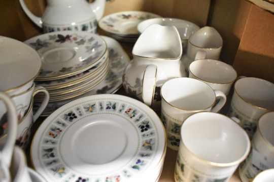 A Royal Doulton bone china Tapestry pattern coffee set, comprising a coffee pot, six coffee cans, six saucers, sugar and cream, sold along with a Royal Doulton bone china Camelot pattern part tea set.