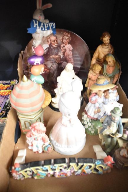 A Knowles Norman Rockwell 'The Cobbler' display plate and a selection of assorted figurines etc.