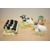 A selection of four late 20th-century Border Fine Arts 'James Herriot's' Country Kitchen pottery wares, to include Sheep sugar bowl, Five calves toast rack, Milk churn jug and Cow butter dish, (4), small chip to lip of jug.