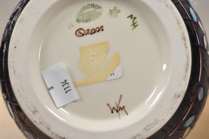 A modern Moorcroft planter , in the Favrile pattern, with box , impressed and signed marks to base, height approx. 16.5cm