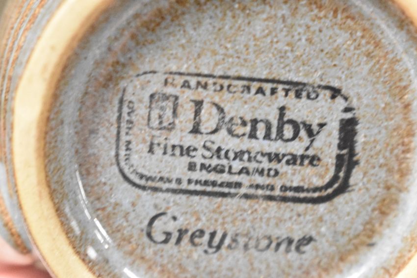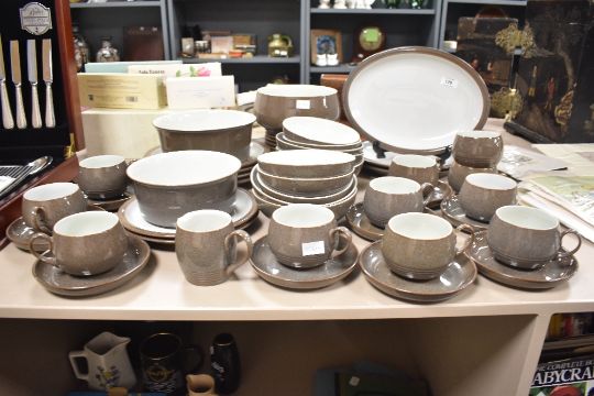 A 20th-century Denby stoneware 'Grey Stone' dinnerware set, to include nine cups and saucers, bowls, plates, and more (46 pieces total), small chip to one plate.