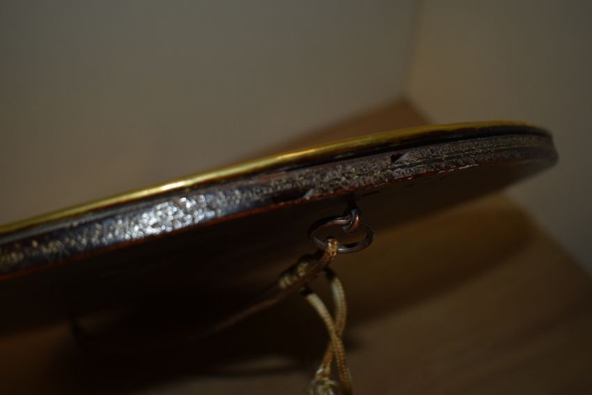 In a very good condition, wear to wooden back panel which is visible from sides and three very small marks to three raised bosses.