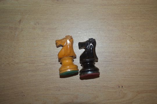 A 19th to early 20th-century wooden hinged-lid box, featuring an array of games and game board pieces, to include, a pair of erotic Lord and Lady dice, colourful bone counters, French Régence-style chess piece set, two other chess set pieces, draughts, and more, sold with two vintage Ludo boards, box is 36cm, signs of wear consistent with use and age to game pieces, box, and Ludo boards.