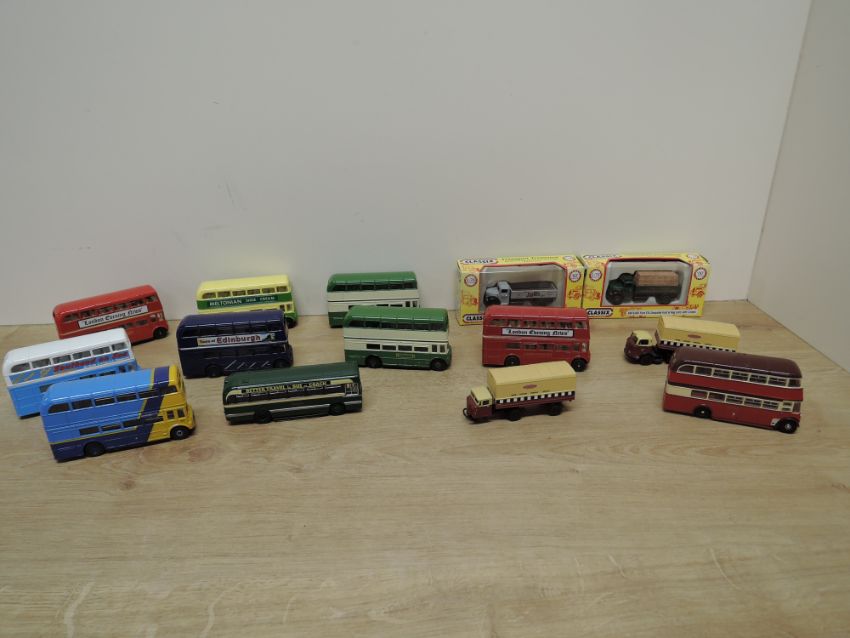 Oxford Die-casts, Flat Wagons, Articulated Wagons, Buses, Fire Service etc, 29 in total along with two Classix 00 gauge Die-casts, Ford Thames and Ford ET6, both boxed (31)