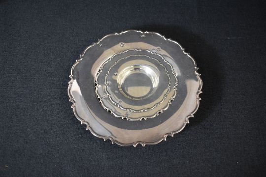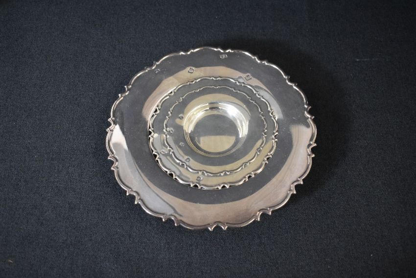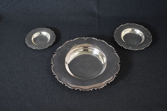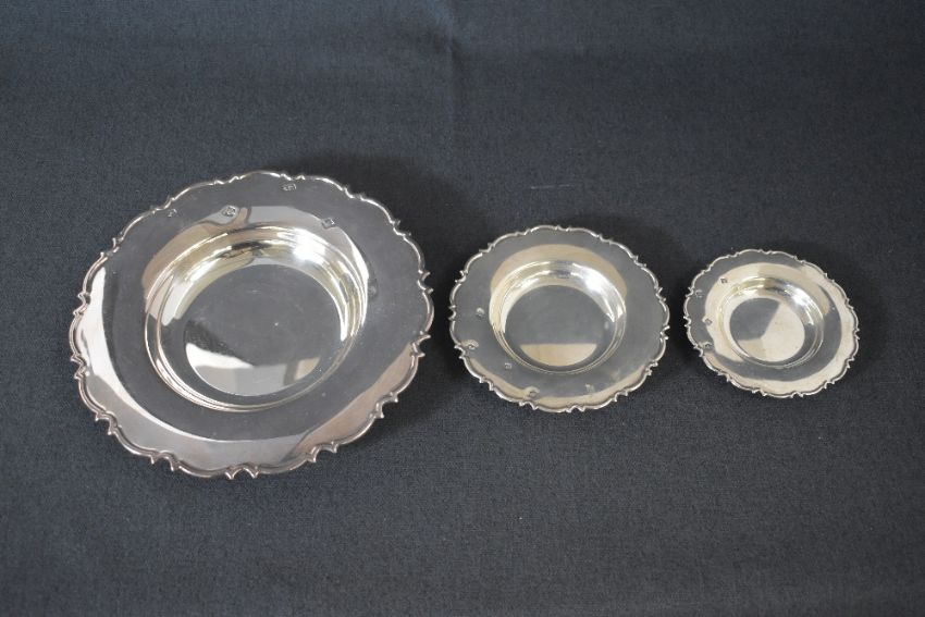 A set of three Elizabeth II silver graduated Armada dishes, having Chippendale dale style rims, marks for Sheffield 1995, maker Carr's of Sheffield Ltd, 440g gross