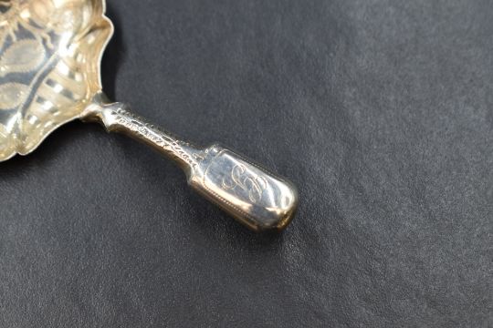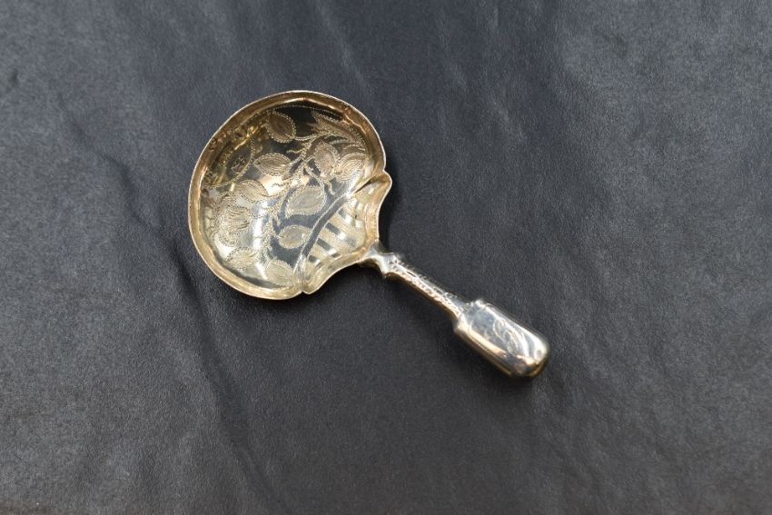 An early William IV silver caddy spoon, of traditional form, having floral engraving to the bowl and 'G' initial to the terminal, marks for Birmingham 1831, maker Joseph Willmore, 7g